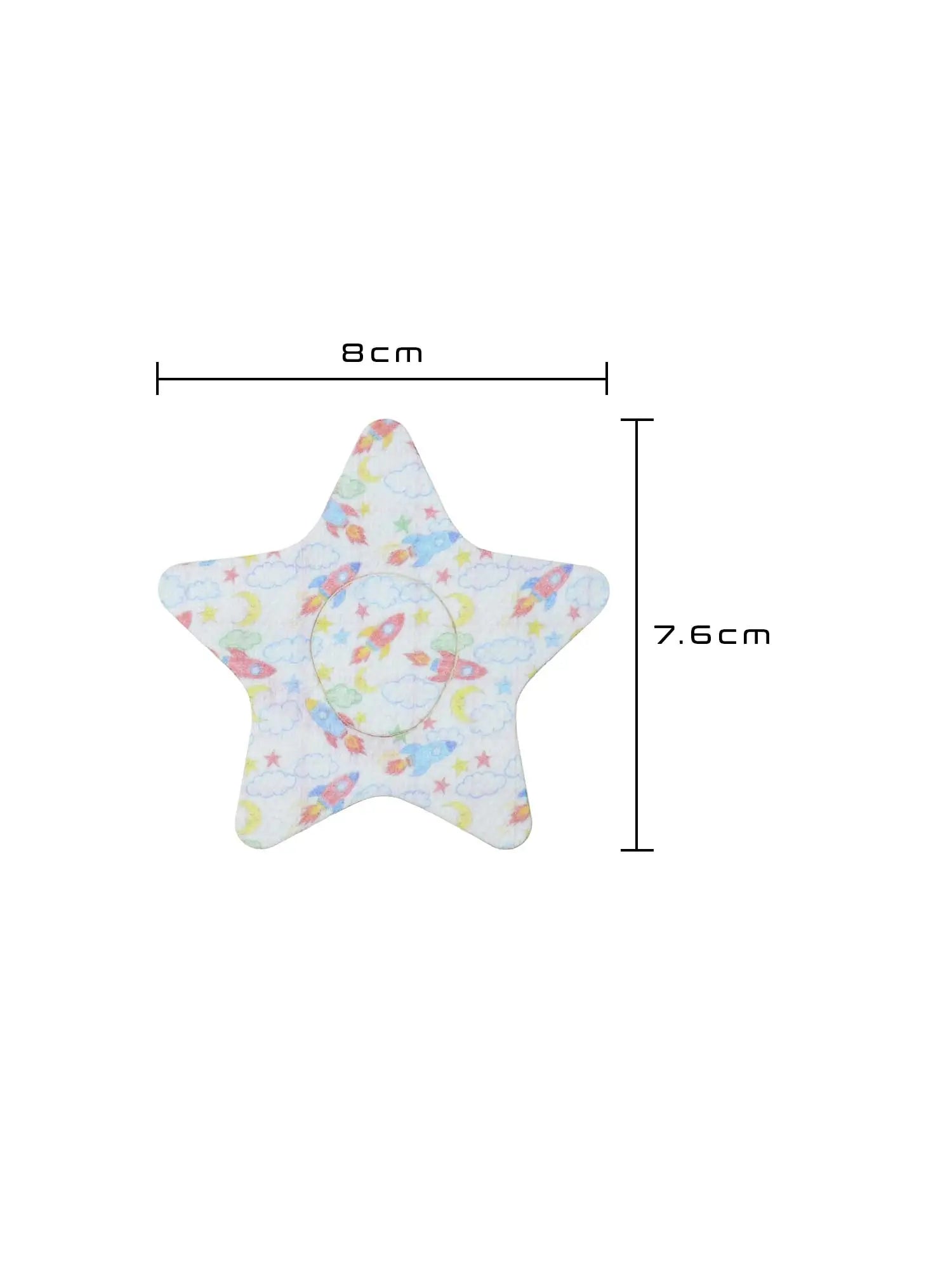 - Estrela: 8,0 cm (L) × 7,6 cm (A)