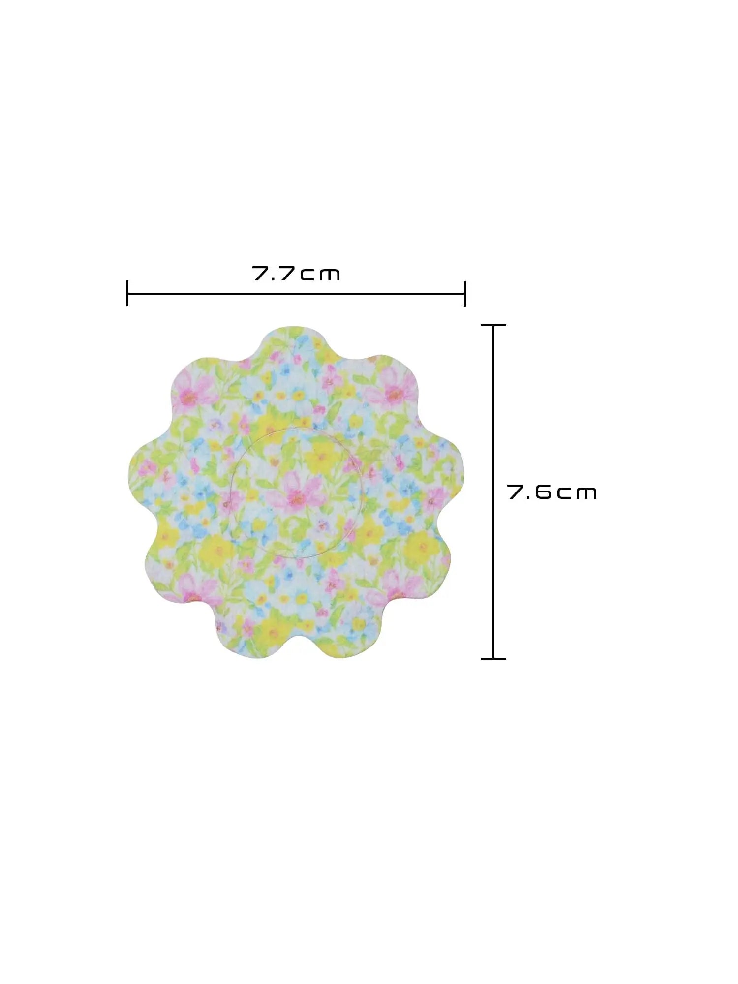 - Flor: 7,7 cm (L) × 7,6 cm (A)
